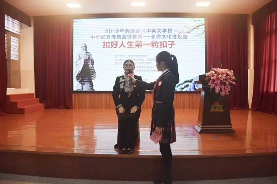 为全面落实党的十九大提出的“培养担当民族复兴大任的时代新人”要求,落实习近平总书记关于青少年“扣好人生第一粒扣子”的重要指示精神,深入开展中华优秀美德教育,进一步加强未成年人思想道德建设,近日,我校举行了中华传统美德教育——“孝德文化进校园”活动,特邀清远市孝德文化促进会的专家老师为此次活动主讲。