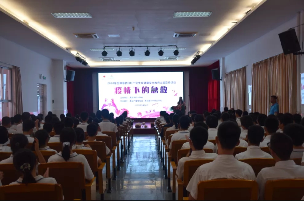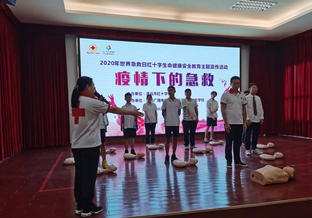 每年9月的第二个星期六是“”世界急救日”,今年是第21个“世界急救日”,主题为“疫情下的急救”。为纪念这个特殊节日,更好地传播红十字精神与应急救护知识,9月10日下午,由清远市红十字会主办、清远广播电视台和清远盛兴中英文学校协办“疫情下的急救”为主题的2020年世界急救日•红十字生命健康安全教育主题宣传活动走进盛兴校园,旨在普及师生的应急救护知识和技能,宣传与推动应急救护工作。清远市红十字会常务副会长林瀚声、清远市红十字会副会长兼秘书长胡志年、清远广播电视台健康教育中心总监周帆以及盛兴中英文学校总校副校长余跃斌等出席活动。