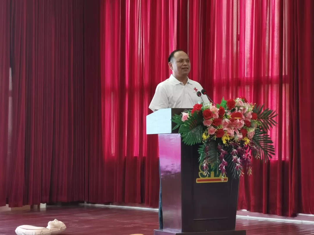 清远市红十字会常务副会长林瀚声讲话:希望大家能重视急救知识的普及,让更多的人士掌握急救技能技巧,在事发现场挽救生命和降低伤害程度。