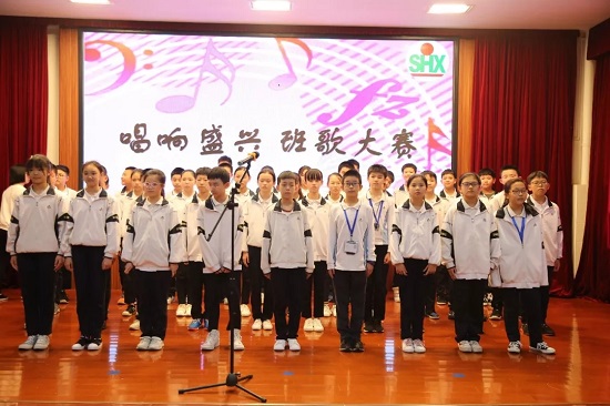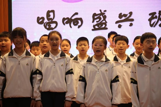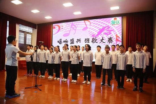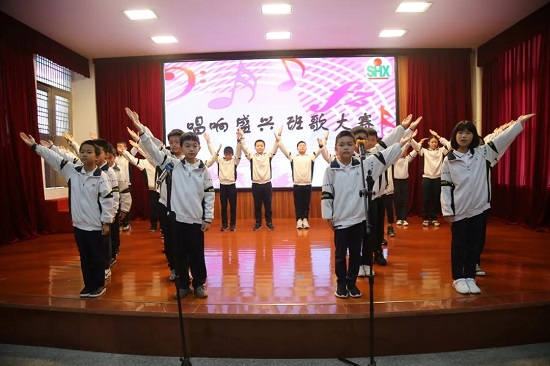 各班高喊班级励志口号,唱响盛兴校园,整个比赛气氛热烈激昂、学生服装整洁统一、精神饱满、台风端正。